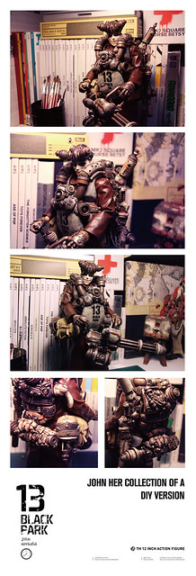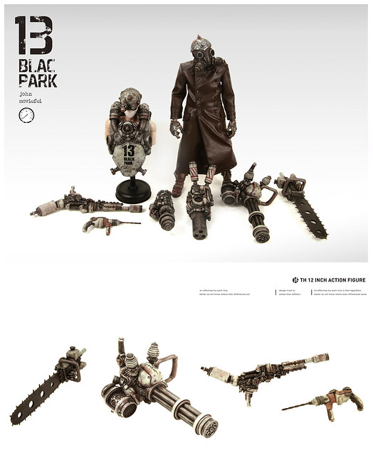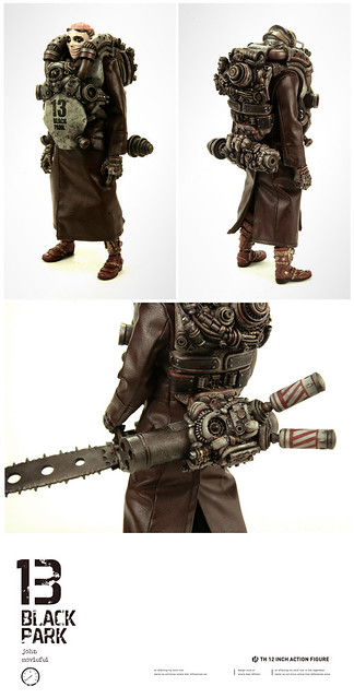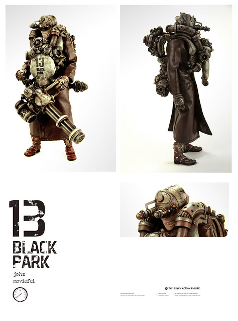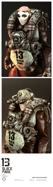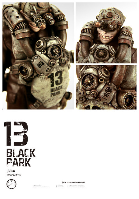 1/6比例公仔再現新勢力!來自中國的BLACK 13 PARK為大家獻上帶有濃厚蒸汽龐克風,並混雜「舊化」、「機械」及「末日」元素的新酷玩意兒。BLACK 13 PARK是在2011年由插畫家兼人偶設計師的John(畢鈞瑞)以及原型師Moviefei(顧博謙)兩位設計師共同組成,獨特的創作風格讓人眼睛為之一亮!自2012年4月起已經推出限量作品販售,並且未來會有更多作品發表,有興趣的朋友可以到以下網址參考!http://moviefei.blogbus.com/