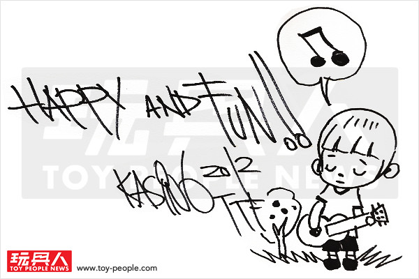 正沉醉在HOW2WORK的展品之際,小編眼睛一亮,是誰?!是鼎鼎大名的「龍家昇」老師耶!當然也是要請老師幫我們回答一下「玩具對你而言是什麼?」不愧是家昇老師,幾筆一揮,阿Boy拿著小吉他就活靈活現的出現在我們面前了!