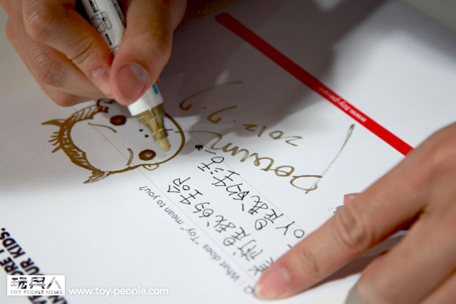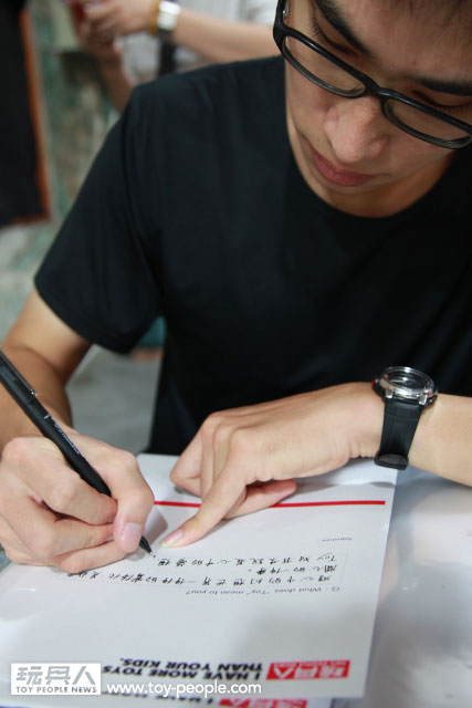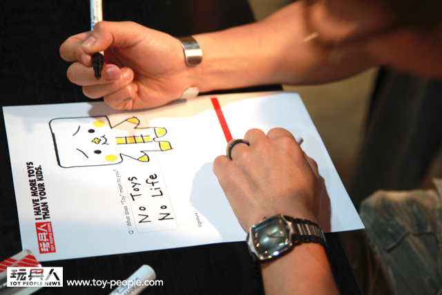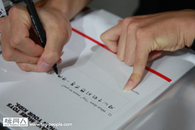 ↓ 一看到ULTRA DESIGN「超人」,小編立馬拿出各位玩具人熟悉的簽名紙請超人寫寫「玩具對你而言是什麼?」