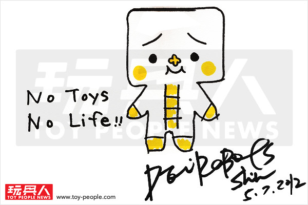 來到豆腐攤,怎麼可以不讓豆腐人的設計師Shin來幫我們作答一下「玩具對你而言是什麼?」呢。Shin 還很貼心的幫我們上色呢!