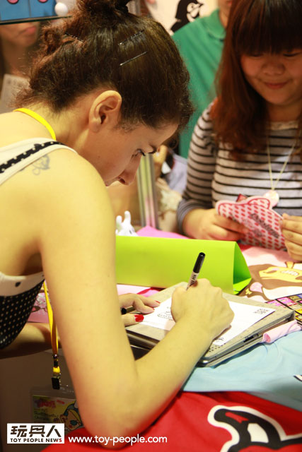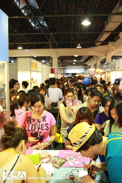 ↓ 雷幕理與CHARUCA 兩人相當親切的為每一位前來索取簽名的粉絲簽名,所以攤位前排了長長的人龍~