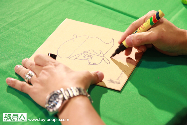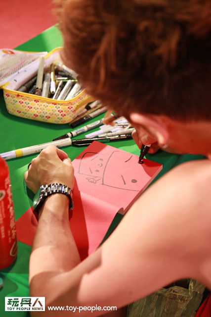 第一場由Shin開始出發,Shin還自備了一大盒各式各樣的畫筆,為的就是讓現場參與簽名會的粉絲都可以拿到一個獨一無二的豆腐人作品!太貼心了啦!