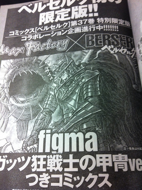 ベルセルク 37巻 figma ガッツ狂戦士の甲冑 Ver.付き 初回限定版 日本於2012年10月31日預約截止,預計2013年3月29日發售,參考售價4,780¥