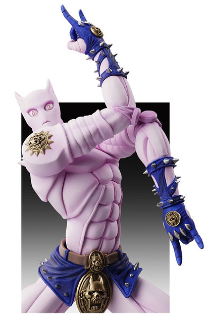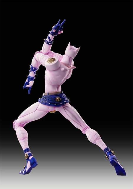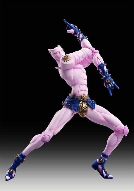 JOJO冒險野郎裡,少數擁有近距離威力型以及自動操作型替身能力的皇后殺手,如今終於要在雕像傳說系列現身了!以經典姿態現身,配上粉紅色配色,強烈的視覺風格絕對是JOJO迷不可錯過的傑作!本商品高約17公分,日幣參考售價約6090日圓,預計2012年12月推出,提供大家參考!