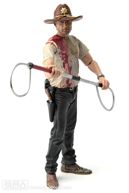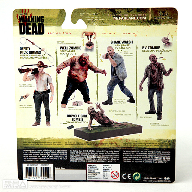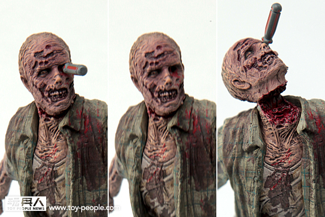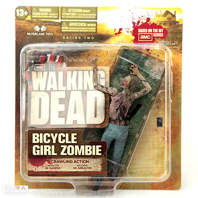 Fight the Dead, Fear the Living一語道盡了美式殭屍片的精髓。AMC大膽嘗試將漫畫作品改編的恐怖連續劇「THE WALKING DEAD(台譯:陰屍路)」自開播後收視率節節攀升,最新已經邁入第3季。因此擅長怪物與吊卡作品的麥法蘭(McFARLANE TOYS)趁勢推出一系列相關作品馬上受大廣大迴響。先前玩具人曾經介紹過會爆頭的流浪漢殭屍(Zombie Roamer),生動的肌肉線條與損傷污漬,配上每支殭屍都有獨一無二的血腥機關設計,讓小編不自覺跳入了這不知何時才會完結的大火坑啊XD!