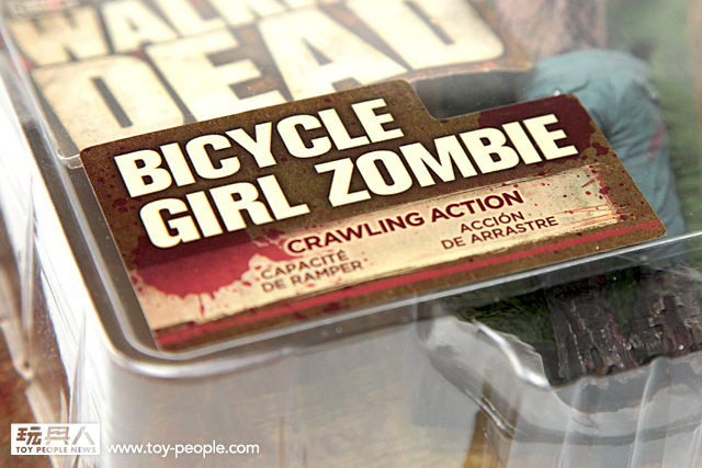 看完上面介紹大家可以知道,當麥法蘭決定推出BICYCLE GIRL ZOMBIE,小編是有多期待了吧!首先我們來看這次的包裝盒,相較先前曾經介紹過的流浪漢殭屍包裝(漫畫版第一彈),這次的包裝則是以第2季的農場為背景。一樣有配上十分顯眼的「THE WALKING DEAD」字樣,並且清楚展示作品本身特色,配上了醒目的殭屍名稱標題與特色說明,就連劇中掉在地上的手機也很清楚的展示出來了!相信喜歡蒐藏吊卡的玩具迷都會喜歡!