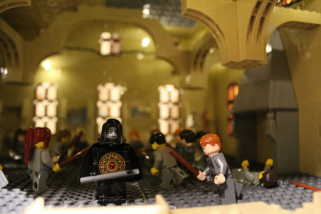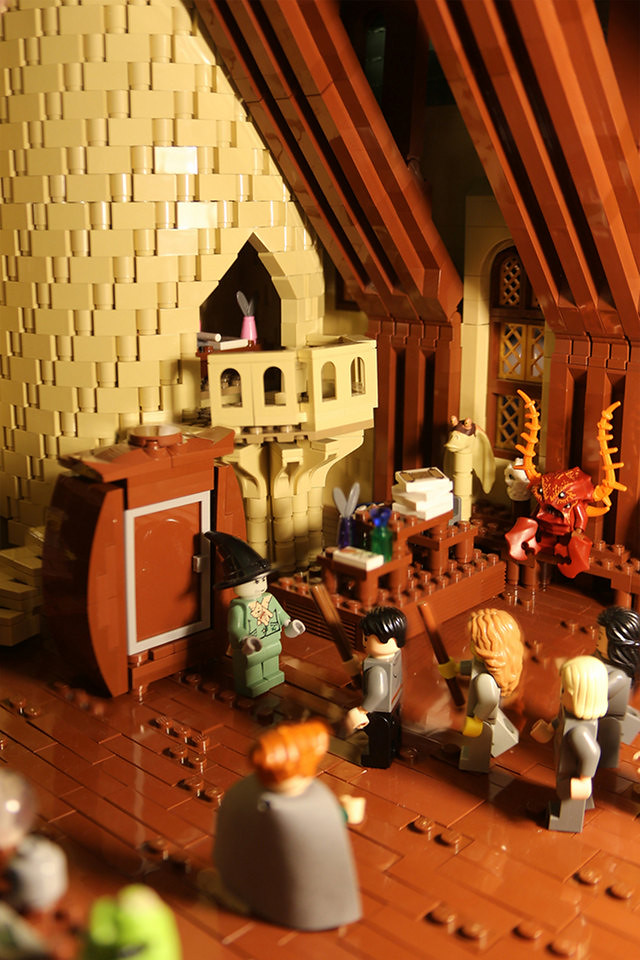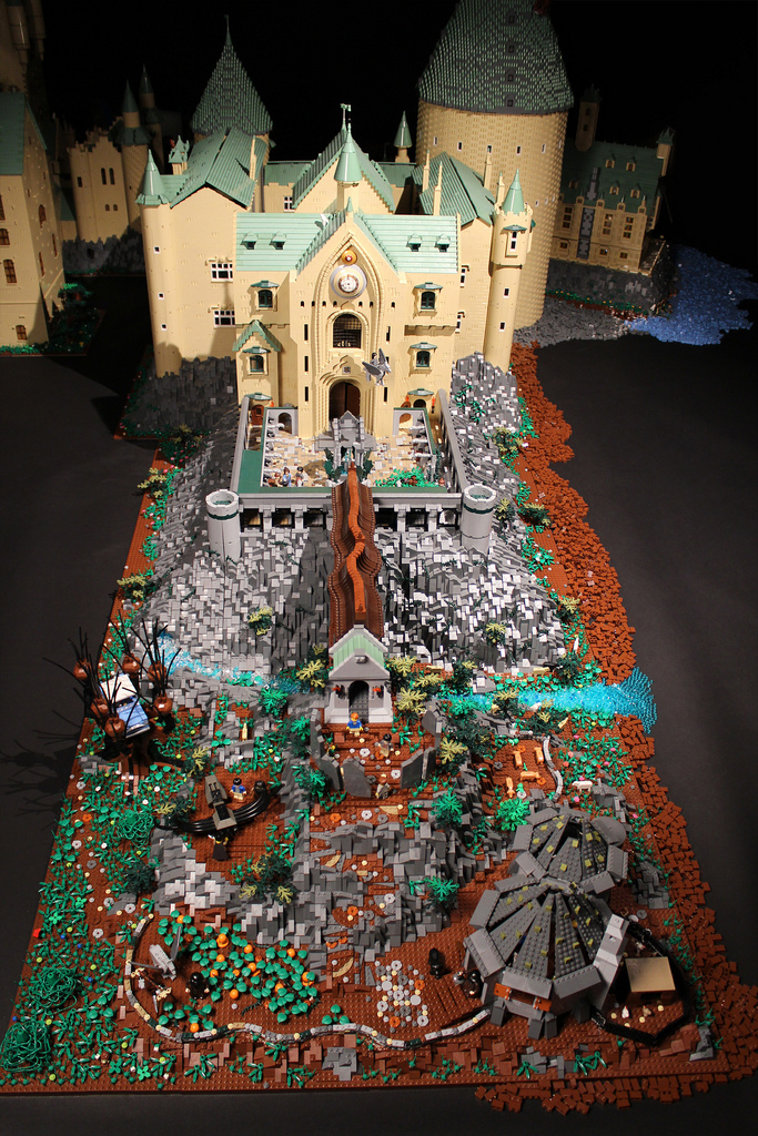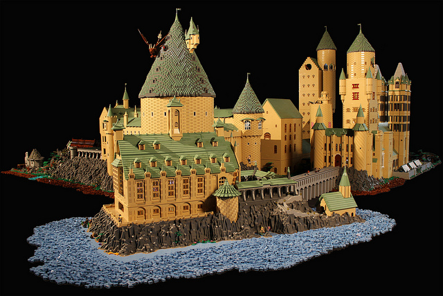 美國西雅圖一名女性樂高玩家“Alice Finch”,使用了超過四十萬片以上的樂高積木耗時一年,完全忠實地以樂高人偶尺寸比例重現,包括了各個經典場景的內裝、可動機關以及發光功能,打造出一個完整的「霍格華茲魔法與巫術學院」(Hogwarts School of Witchcraft and Wizardry)。