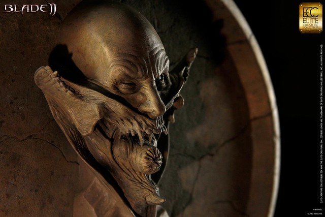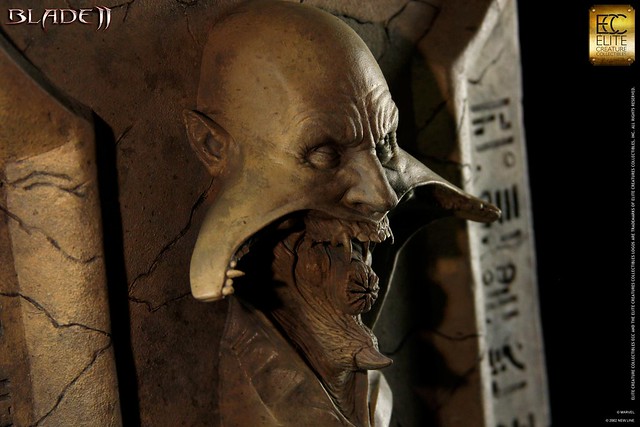 先前我們曾經為大家介紹過ECC即將商品化的傑作,今天再推薦另一款同為ECC小組所推出的REAPER變形石碑(1/3 Scale Transformotion Placard)。 這是一款仿古代石雕藝術風格的展示作品,包含了4個REAPER的變形過程。看過刀鋒戰士2的朋友一定不會忘記電影裡REAPER進食時從人類臉孔分裂變形後的可怕景象,這款作品把一連串的變化過程以石碑的形式展現出來,還取了一個專有名稱為「Transformotion」,莫非未來還會推出一系列「Transformotion」的作品嗎?真令人期待!本作品由特校化妝師Brian Wade所雕刻,高約34英吋,美金售價599元,全球限量100份,但尚未開放搶購,敬請留意官方發售訊息喔!