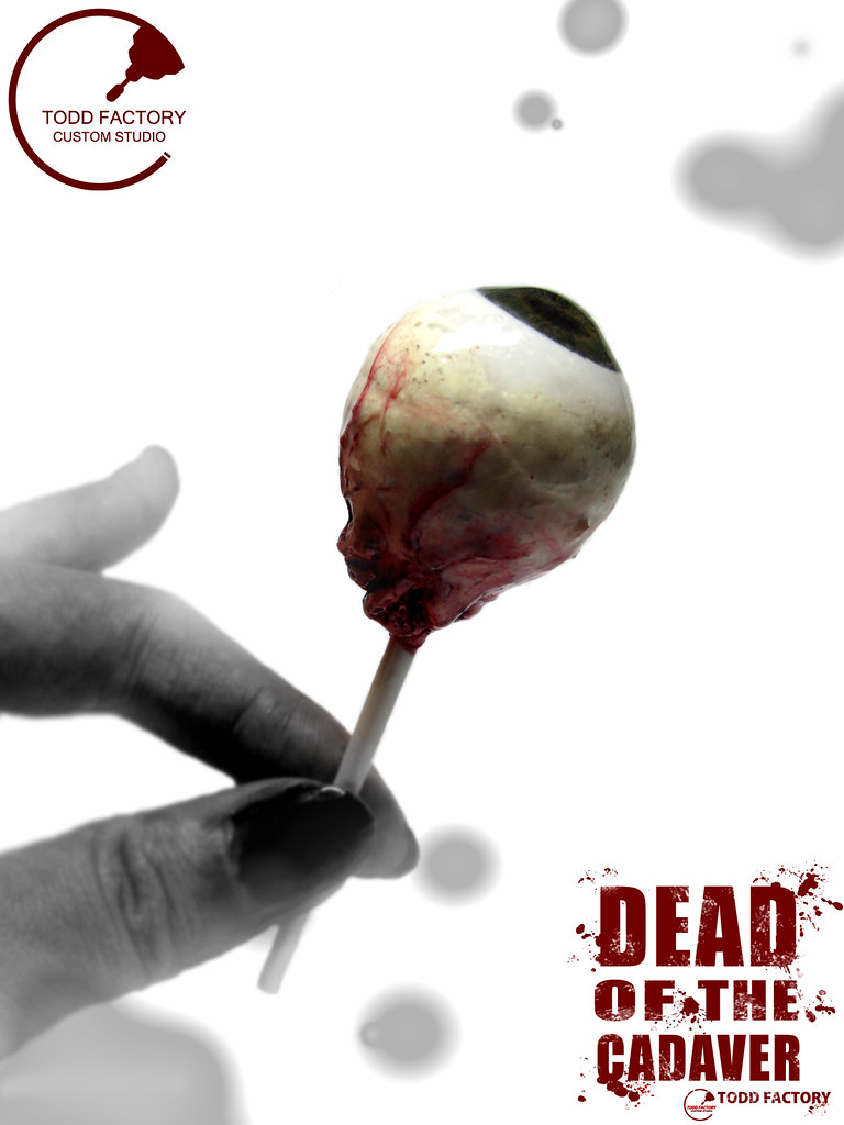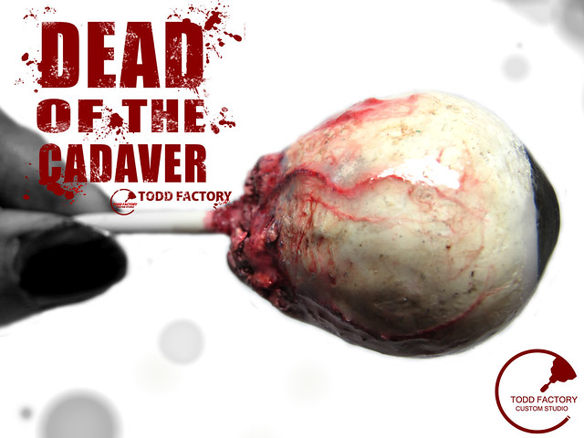 這是一款將眼球製作成棒棒糖造型的模型,雖然實際上市不可食用的,但不論是眼球的尺寸,或是瞳孔、血絲以及牽連的血肉與神經組織,就連玻璃體微凸的模樣... 皆由陶德的巧手一一逼真呈現。如此恐怖又血腥的駭人作品,推薦給各位喜愛恐怖作品的玩具人!~