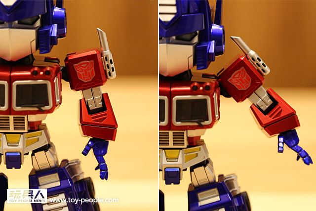 ▼ 配件部分,除了本體上有一對拳頭之外,張開的雙手、持槍以及指向的手勢都很不錯,可重現持槍、領袖姿態的模樣。柯博文的兩款武裝“離子衝擊槍”以及“超能戰斧”都是經典中的經典,絕對是重現G1 造型不可或缺的重要武裝。
