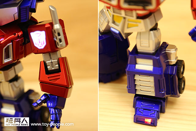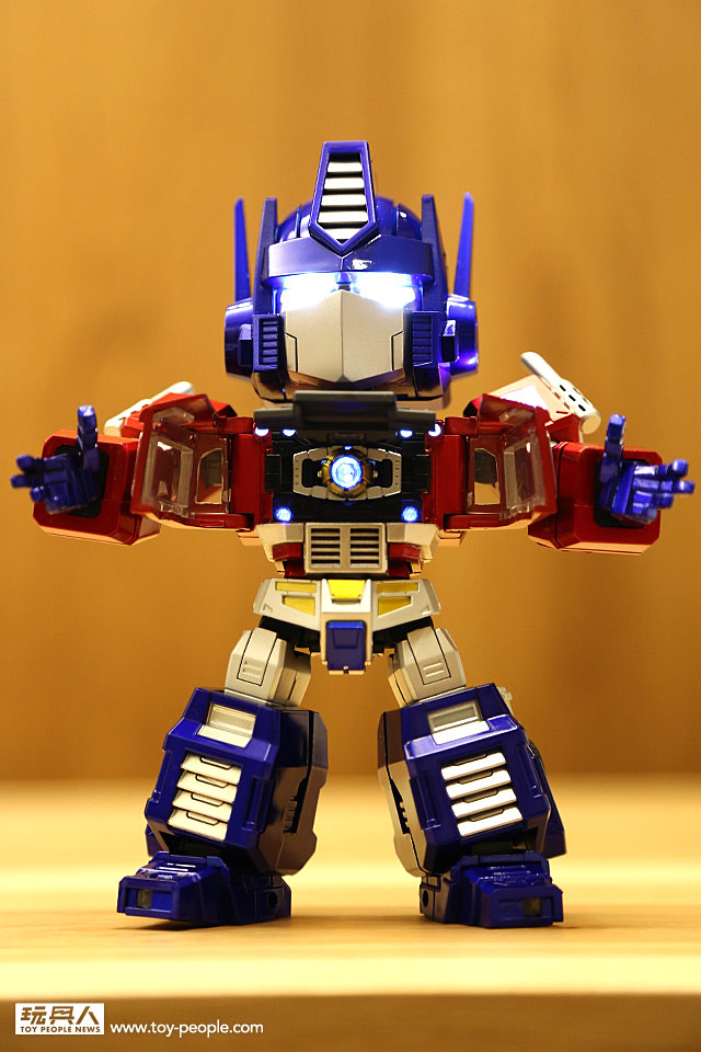 ▼ 這一款柯博文相當精采的另一個部分就是發光的功能,雙眼、胸口、車頭燈、博派標記以及雙腳皆可發光。發光的功能超讚,不像其它玩具僅是微微地發光,這一款柯博文有夠亮的啦~