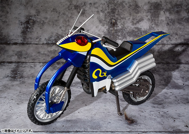 另外搭配假面騎士BLACK RX 的 S.H. Figuarts アクロバッター 飛蝗號(暫時翻譯),照片最下方的飛蝗號也將會推出新的版本,也是於2014年4月一起販售,車前緣的車燈部分使用透明配件,車體尺寸長約有16公分,售價約為4,800日幣,喜歡假面騎士的玩具人可以參考一下。