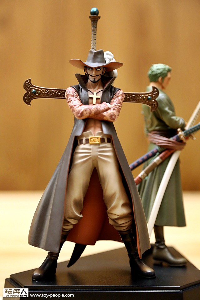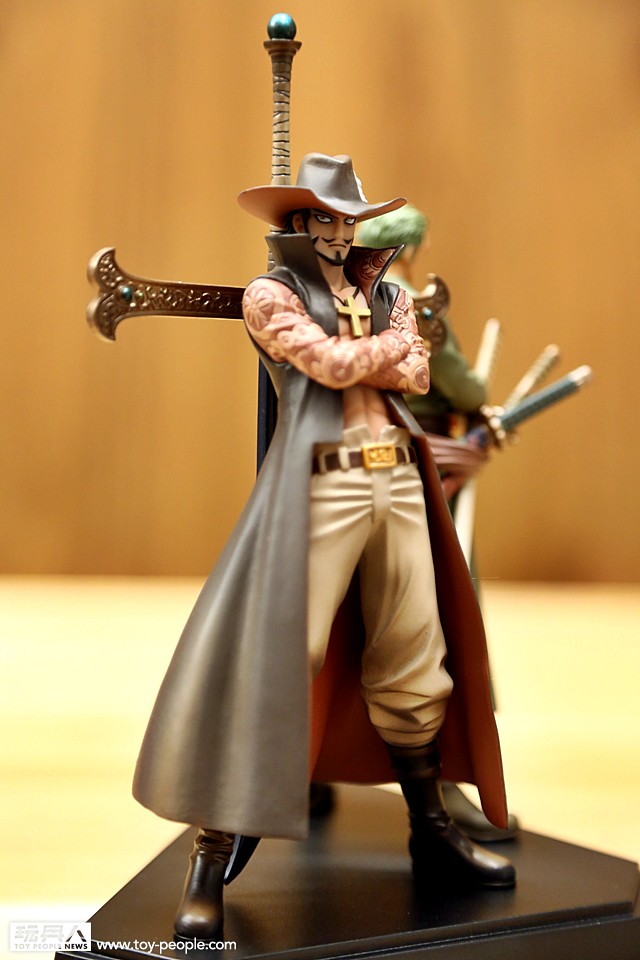 ▼ 「王下七武海」中的一人、世界最強劍士「鷹眼」密佛格。擁有獵鷹般銳利的眼神,以及背上世界最強之黑刀的「夜」是經典造型。冷澈的眼神、雙手交叉以及邁開雙腳的站姿充分展現了他「世上最強」的自信。