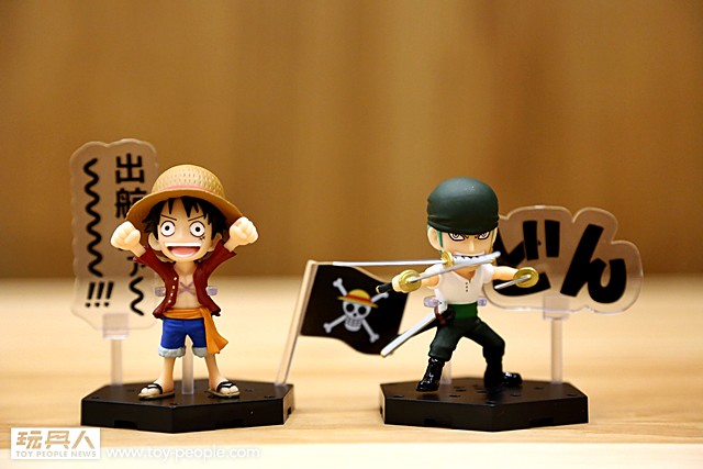 ▼ E賞 收藏型公仔的另外兩個款式。首先是,從死刑場獲救,決心成為魯夫伙伴一瞬間的索隆;以及獲得了第一個伙伴,開心地宣布出航的魯夫。這兩個款式可說是“草帽一行人”正式啟航的成員,如此經典的一瞬間被立體化,可說是極具收藏意義啊!~