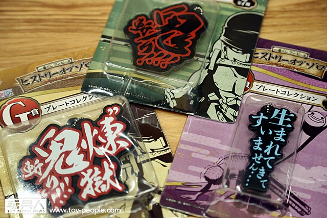 ▼ G賞 文字牌吊飾。採用了索隆極具氣勢的招式名稱作為設計,氣勢十足!而右下角則是慘遭「幽靈公主」培羅娜的悲觀鬼魂穿透之後,變的極為憂鬱而跪地說出的爆笑台詞「對不起...我不該被生下來」XDDD