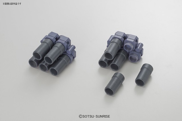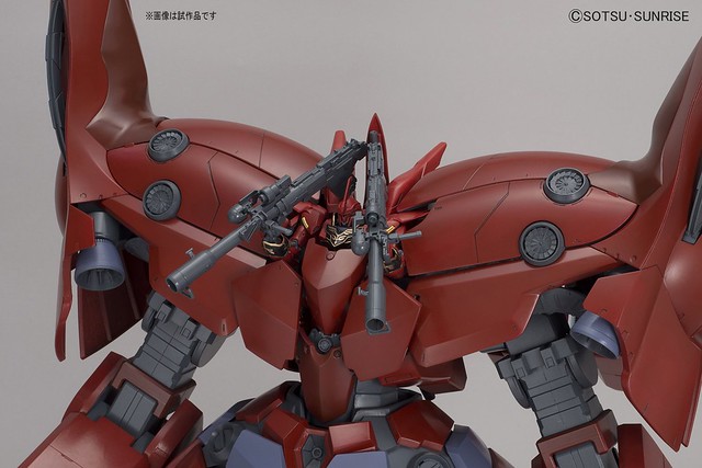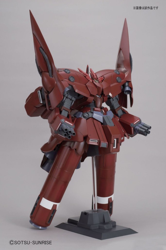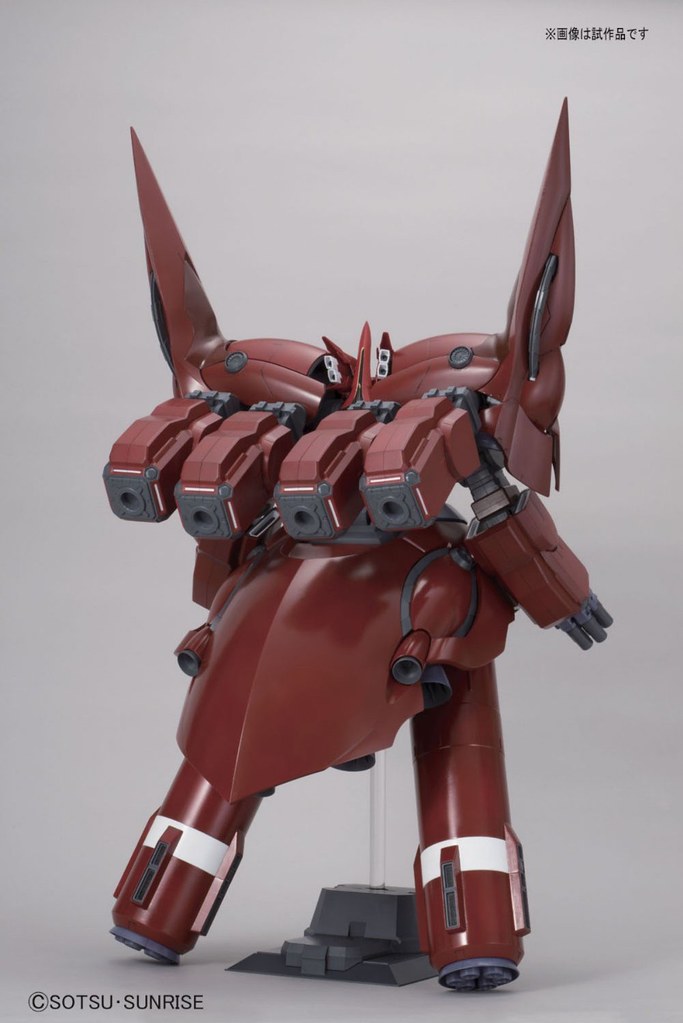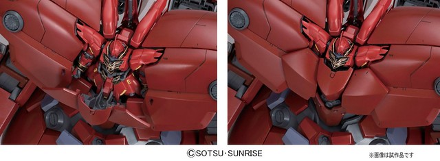 在過去的作品中,超巨型尺寸的機體都僅會推出1/400 或更小的比例,但這次居然推出了全長860mm的巨型款式! 並且也忠實呈現了內部、機體各部位噴射口的精緻細節,而且還具備了能夠與新安洲(シナンジュ)合體分離的構造。附屬了新安洲專用的火箭炮,並有長、短兩種不同款式可選擇。