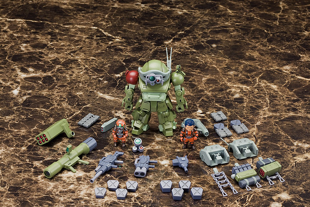 這次D-STYLE 所推出的裝甲騎兵Scopedog Trubo Custom SANA戰仕様,可以呈現Gregore機 / Byman機 / Murza機 三種裝備式樣,一樣可以打開駕駛座讓角色人物可以搭乘,並配三款機體的搭載武器等等不同版本,並且細節地重現了駕駛艙的內部構造,搭配了大量可動關節,駕駛降下機體的姿態以及各式經典的武裝、豐富配件等等。