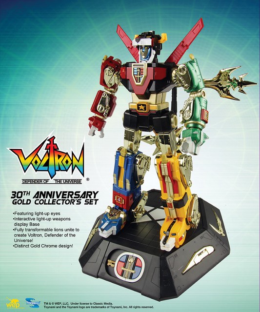 另外,1980年代的經典合體機器人作品五獅合體”聖戰士Voltron”適逢30週年, 美國TOYNAMI公司特別生產了一款Gold Voltron SDCC限定商品,以此慶祝30週年紀念,除了Voltron以外,還有2015年即將滿30週年的”超時空要塞” TOYNAMI也特別為此推出了一款VF-1S Q版SDCC限定商品,這兩款SDCC限定商品都將再台北動漫展曝光,粉絲們千萬不要錯過。