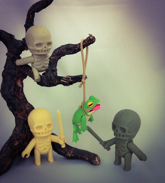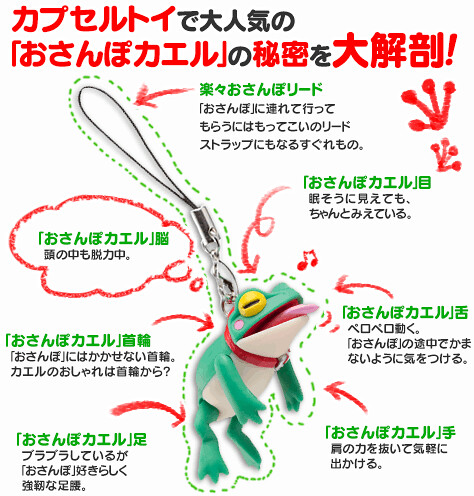 SKULLTULA 既古怪又可愛的創作風格令他創作的轉蛋系列 “散步青蛙” 大受好評!招牌的眯著眼吐舌、脖子還掛著牽繩的散步青蛙至今已推出到第六彈,SKULLTULA 在2013年也開始設計搪膠公仔。