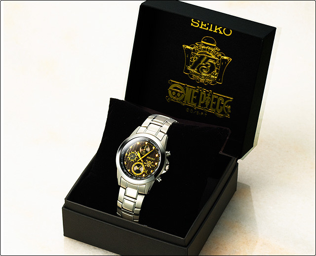 自1997年海賊王連載以來,已經締造許多驚人的漫畫銷售記錄。為紀念海賊王連載15週年,日本SEIKO特別推出了15週年紀念款。錶面上以高貴時尚的黑色為底色,搭配黃金色的海賊風圖案,對比反差形成了強烈、華麗的視覺感。錶面上有草帽海賊團的旗幟圖案、以船舵為裝飾的小秒針以及以船錨為圖案所設計的秒針,滿滿的海賊風格,相信粉絲都會愛上!另外錶的背面刻有15週年紀念圖樣,搭配黑金配色的專屬收納盒,充滿高級時尚感,特別推薦給大家!