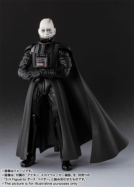 鮮少推出真人作品的S.H.Figuarts,這次使用了最新的特殊數位印刷技術來塗裝,呈現人工難以捕捉的微妙表情。並且將豪華地附贈了兩種不同的表情零件與髮型零件,能夠重現原作中的不同場景。除此之外,為了能夠徹底的重現決戰場景,將追加一款黑武士戰敗脫盔之後的“安納金‧天行者”造型頭雕,為父子對決增添更多的賣點!