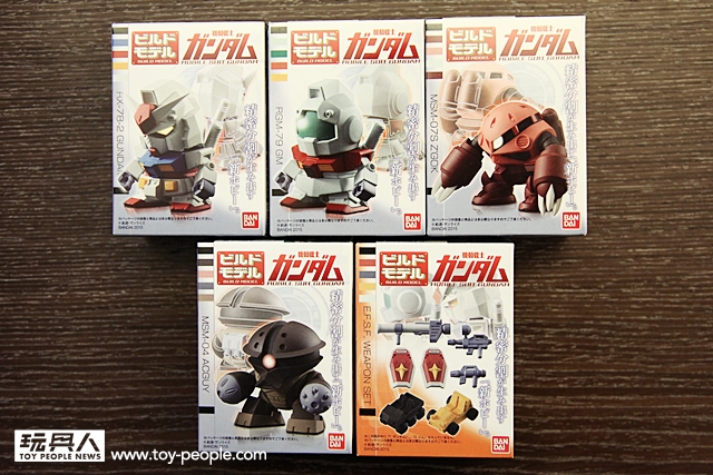 ▼ 「Build Model Gundam」首款推出五個款式,分別是:鋼彈、吉姆、夏亞專用茲寇克、亞凱以及連邦軍武器組。