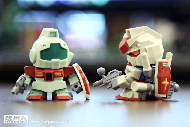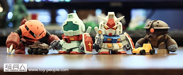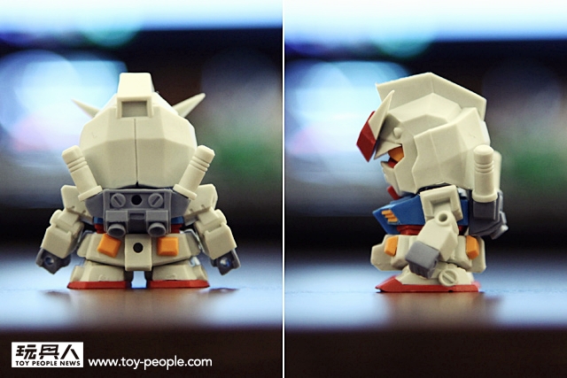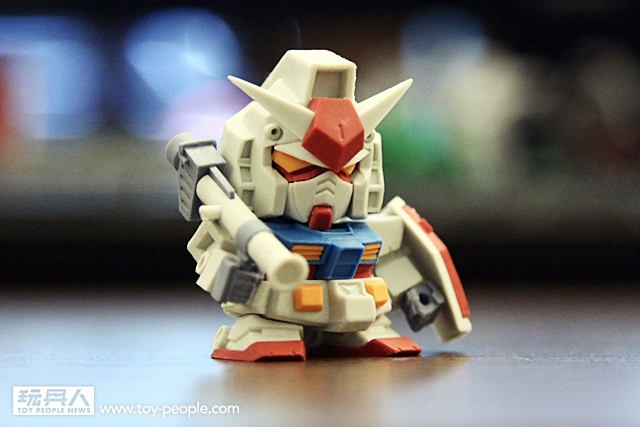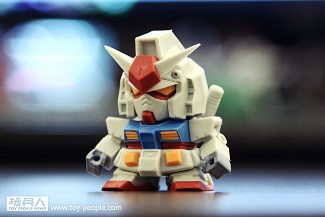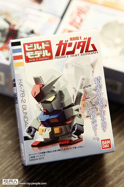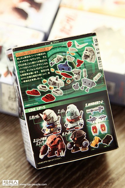 「Build Model Gundam」食玩系列,最大的特色在於每一個零件皆使用「橡皮擦」(消しゴム)製作,利用橡皮擦不易變形,線條更較塑膠細緻的特性;加上使用分色零件的製作方式,忠實地呈現原始機體的分色。雖然全高僅有約45mm 的迷你尺寸,不過造型線條卻相當地銳利、細緻,利用嶄新的素材,打造出全新不同感受的把玩手感,相當有意思!~