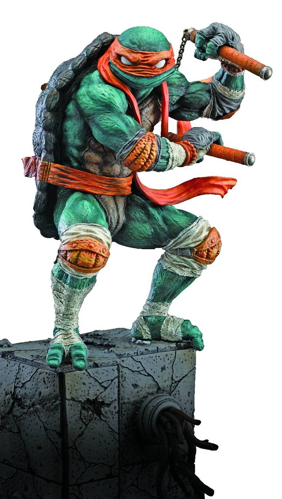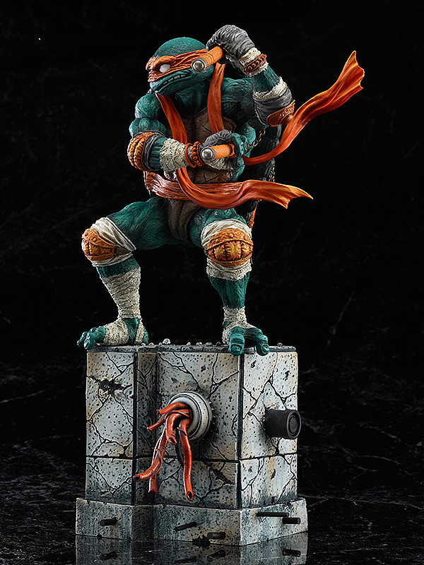 由台灣裔美國畫家「詹姆斯.簡」(James Jean)所設計帶有點浮世繪風格的「忍者龜」(Teenage Mutant Ninja Turtles;TMNT)海報備受許多人的矚目。日本知名的玩具造型廠商Good Smile Company 公司在日前也推出首款「李奧納多」(Leonardo)的收藏雕像作品之後,又再公布了第二款「米開朗基羅」(Michelangelo)的作品了!