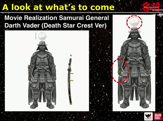 繼去年BANDAI在秋葉原UDX會場所舉辦的「魂BANDAIネイション2014」曝光了名將MOVIE REALIZATION系列部分新作之後,BANDAI 又在星際大戰週年活動「Star Wars Celebration」上公開了更多新作的設計圖,包含了賞金獵人「波巴‧費特」、新的死星版「達斯‧維德」以及更多的帝國兵種一一化身為戰國風格的模樣。