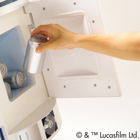 之前也有飲料廠商推出以「R2-D2」的造型冰箱,不過這次在其設計加上了「電機自走」,頭部也可以像電影出現的一樣可以發光和說出電腦聲音,內藏有充電電池和RC無線操作、和發出聲響等等的多功能,AQUA公司於日也特別舉辦了一場商品發表會,有興趣的玩具人可以參考下方連結宣傳影片。