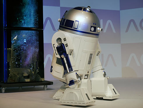 ▼ ハイアールアジア(AQUA) R2-D2型自走式冷蔵庫 静止状態。