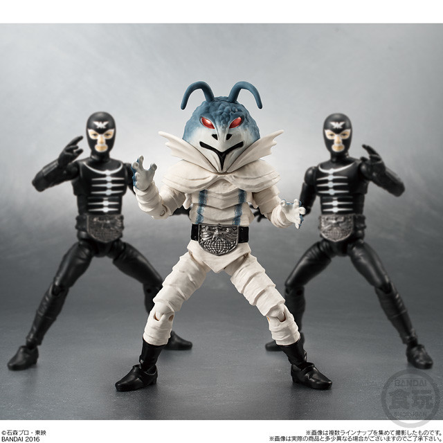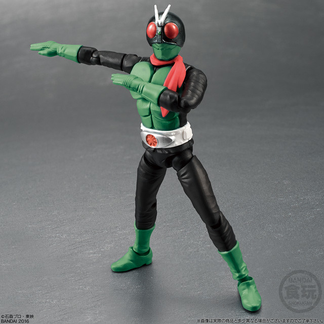 此次收錄了三位假面騎士和敵陣營的兩種角色,其中一款是人氣不輸給主要騎士的修卡戰鬥員ショッカー,小編也入手了第一彈覺得可動度真的CP值非常高,難怪網路上好評價不斷,雖然很多地方需要簡易的組裝,另外將組裝說明書,印製在包裝盒內這點真是十分環保的設計,不過台灣地區因為食品糖果檢驗的問題,幾乎都不知道到底所附的糖果是什麼口味?有愛的玩具人可以一次購買10小盒一中盒,多收集幾隻戰鬥員小兵來組成軍隊啊!喜歡《假面騎士》系列的玩具人可以參考一下歐!