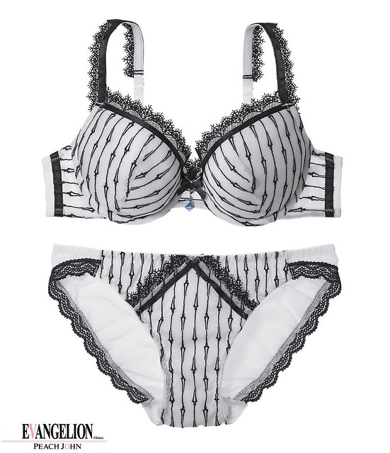 以《新世紀福音戰士》中神秘武器“朗基努斯之槍”為概念所設計的內衣套裝,使用“朗基努斯之槍”作為花紋、設計出帶點成熟大人味道的女性時尚內衣,並且在胸口飾有象徵第6使徒的鑽飾。以強力武器作為花紋、帶有成熟性感的魅力,是不是會讓可愛的她,展現出強勢、主動的另一面呢?