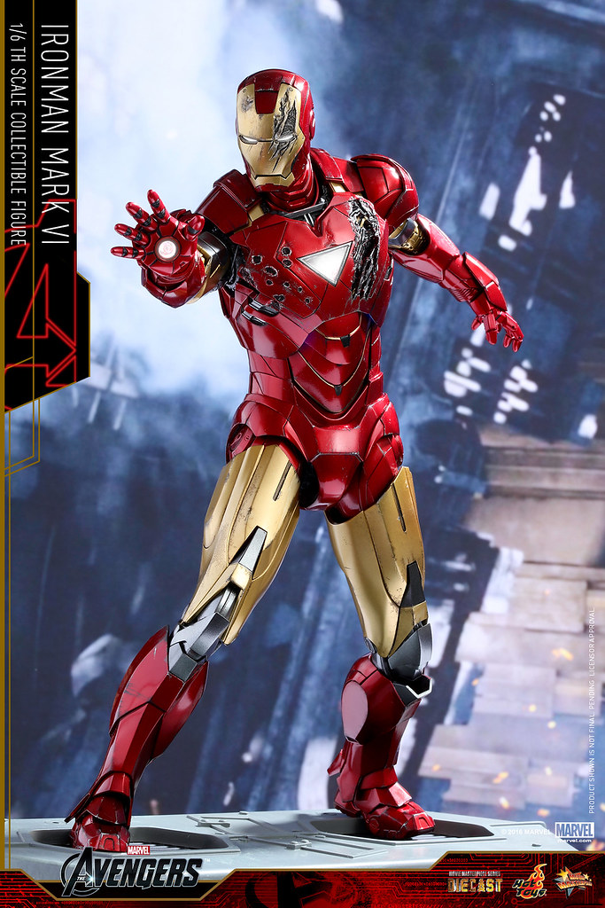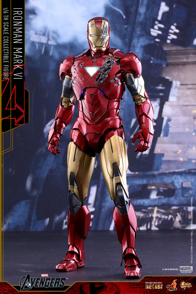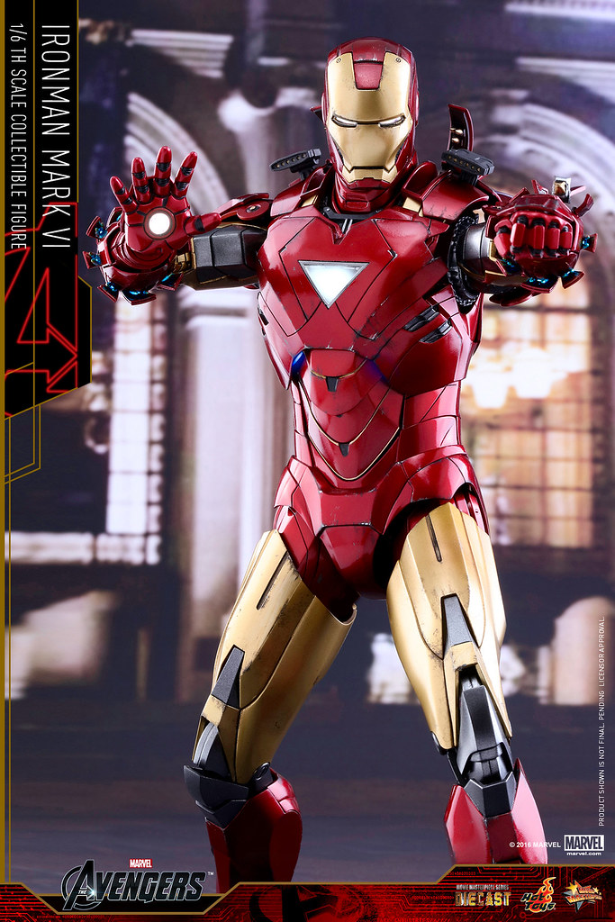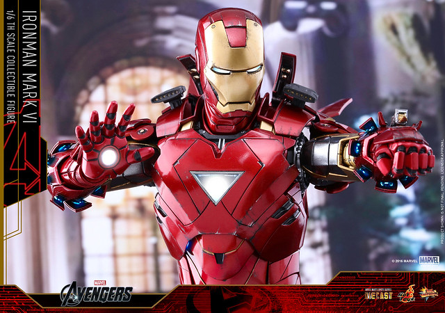 Hot Toys 公司繼推出了電影美國隊長3:英雄內戰中登場的鋼鐵人「馬克46」(Mark XLVI)與「戰爭機器」(War Machine)的作品之後,又將要推出經典復仇者聯盟鋼鐵人「馬克6」(Mark VI)的1/6 比例可動合金人偶作品。