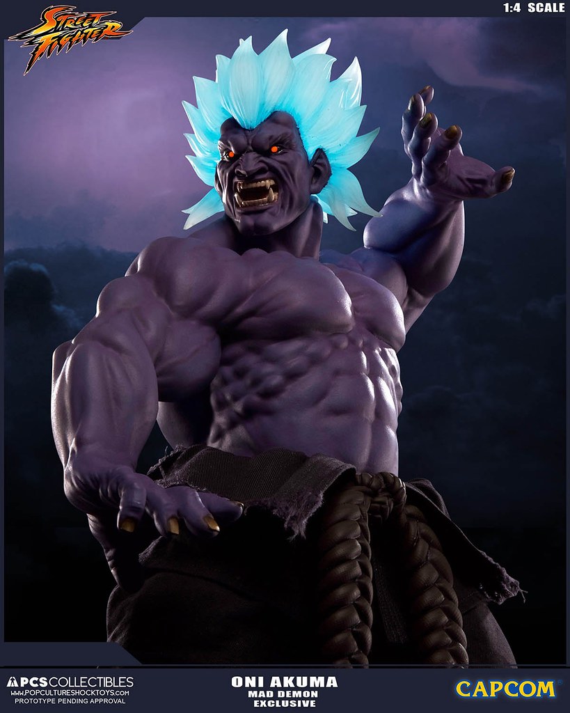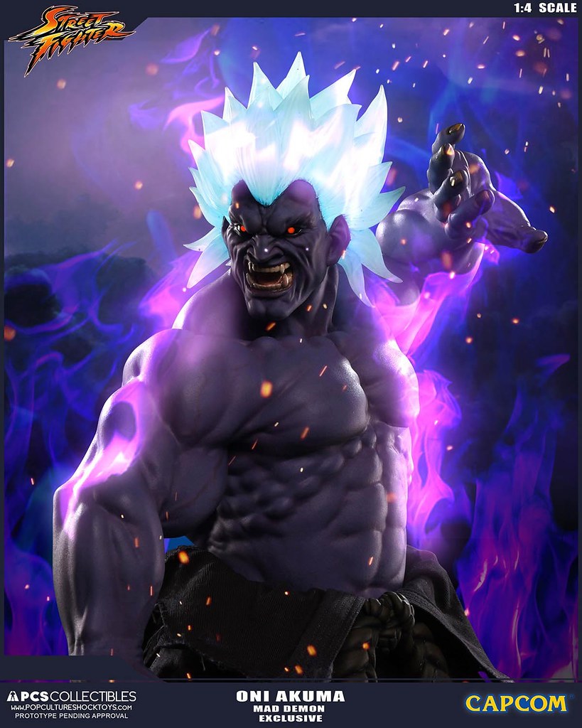 以各種電玩、影視題材為主題,推出大魄力尺寸雕像的歐美新銳廠牌「Pop Culture Shock」,宣布將推出《快打旋風4:街機版》(Super Street Fighter IV: Arcade Edition)追加的新角色“狂鬼”(ONI AKUMA/狂オシキ鬼)1/4 比例雕像。
