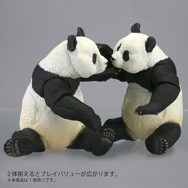 「Sofubi Toy Box003 大貓熊」同樣是由海洋堂首席的動物原型師松村忍(松村しのぶ)擔任原型製作,將貓雄的特徵例如下半身較深的毛色等製作得栩栩如生。在不影響外型的情況下設置關節,全身共有10處可動部位,可以擺出各種十分滑稽可愛的動作。