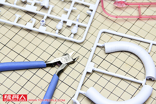 ▼ 首先,預留大約1mm的湯口剪裁,初步的將零件從框架上取下來。