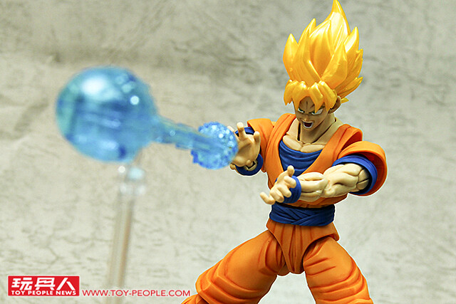 ▼ 超級賽亞人的金色頭髮則是以特殊的成形色質感重現,衣物縐褶感也表現得不錯。最後龜派氣功是以透明零件重現的!