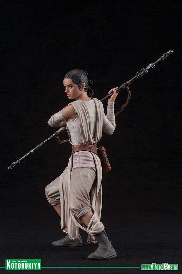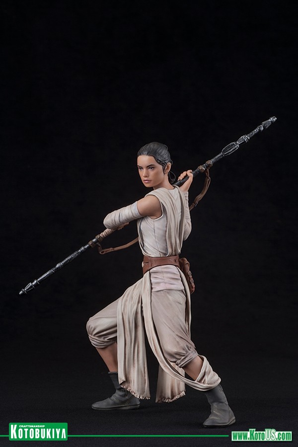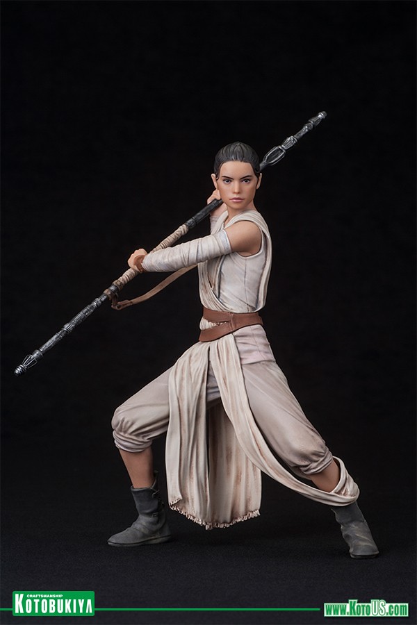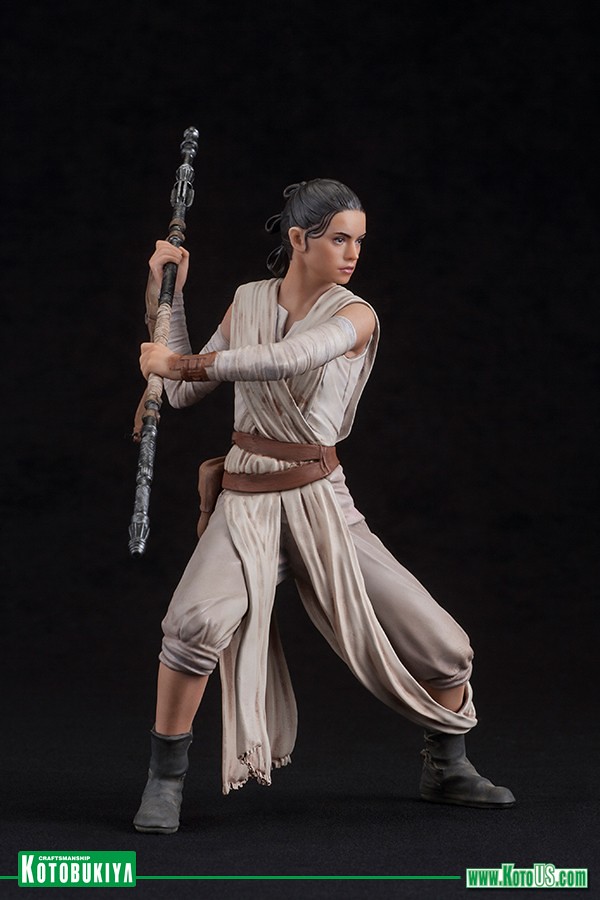 繼日前推出電影STAR WARS:原力覺醒中登場的R2-D2、C-3PO以及 BB-8 的雕像作品之後,日本知名雕像品牌壽屋(KOTOBUKIYA)公司又將在旗下ARTFX+ Statue 雕像系列的作品推出了1/10 比例「芮」(Rey)與「芬恩」(Finn)雙人搭檔組合包的雕像作品。