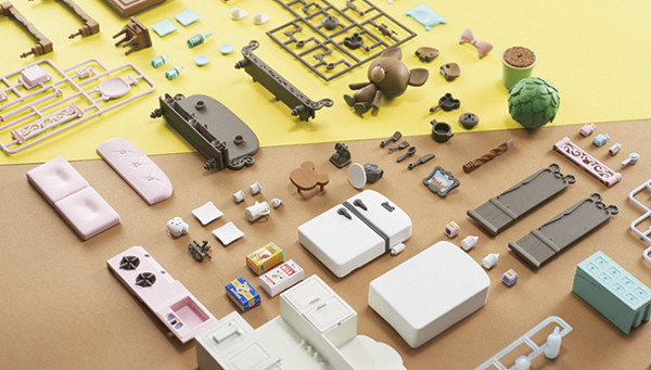 「HACO ROOM(ハコルーム)」是以萬代多年來培養的組裝模型生產技術,將人物、場景、家具小物立體化,不論是成形色或套件細節都經過特殊設計,是不須經過塗裝,甚至不用任何工具,徒手就能完成的模型,大人小孩都能輕鬆上手。