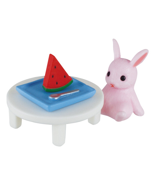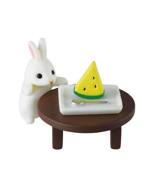 4.ちゃぶ台でスイカ(白うさぎ)/茶几上的西瓜(白色)