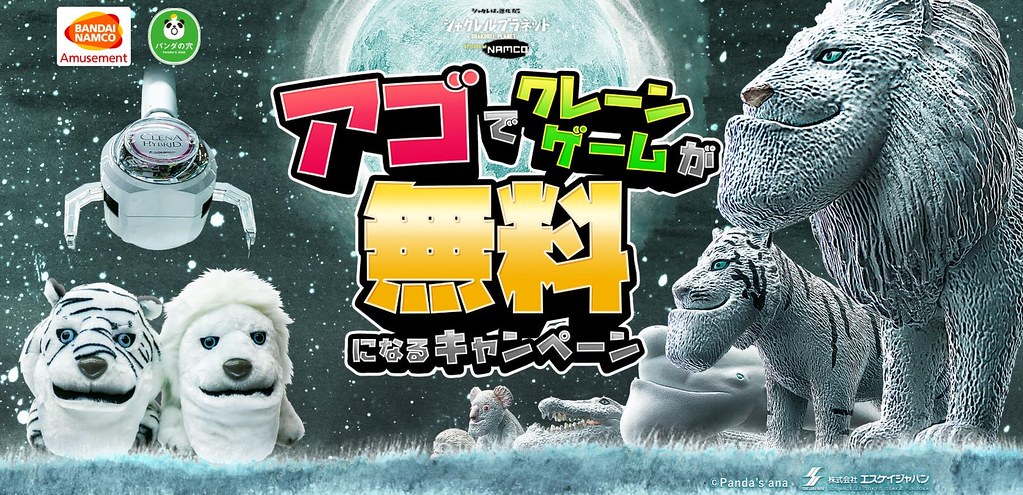 因為推出搞笑創意的轉蛋商品而爆紅的玩具品牌「熊貓之穴」(パンダの穴)與日本NAMCO(ナムコ)旗下遊樂中心合作,推出「戽斗星球」(シャクレルプラネット/SHAKUREL PLANET)厚道動物系列的限定免費活動:「「下巴夾娃娃機挑戰」」(アゴでクレーンゲーム)有抓娃娃機限定商品與獎品,這項超ㄎㄧㄤ、超惡搞的活動預計 2019年 12月 14日、15日兩天將在日本 NAMCO指定店舖展開!