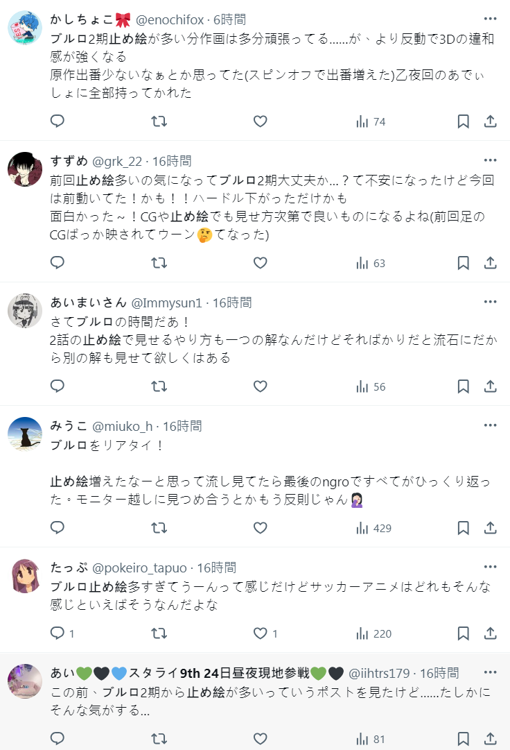 10 月起動畫第二季播出中,不過目前播到第三集,卻湧現不少觀眾粉絲對於動畫表現不甚滿意,過多的「靜止畫」( 止め絵 ) 以及 3D 人物模組,無法展現出運動作品該有的人物動作效果,甚至比某些不是運動作品的動畫更糟。