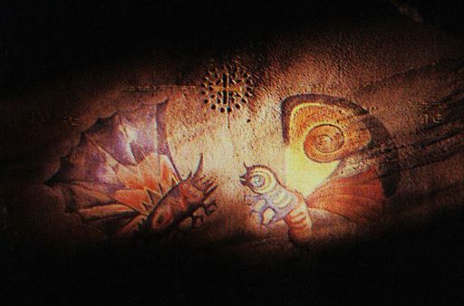 嬰兒島中有描繪著2隻幼蟲的壁畫。