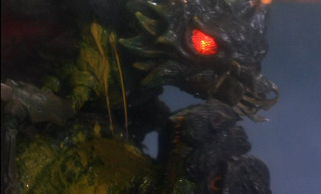 迫使摩斯拉與他戰鬥。戰鬥期間因為氣候控制裝置被破壞引發了大洪水
