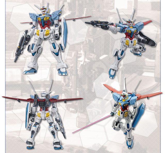 ▼ G-セルフ(中譯:G-自我/英譯:G-Self),鋼彈主角機,謎之MS(所以連名稱也很謎...),有特殊啟動條件,只會對主角貝利、女主角阿依達和謎之少女拉萊雅作出反應。(該不會又是一男二女的組合?)能對應各種狀況的萬能機體。擁有各種換裝背包,隨著背包變化,機體顏色也會跟著改變。HG 1/144 G-Self大氣圏用背包装備型,2014年9月發售,1728日幣。