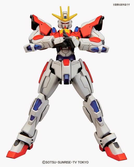 製作燃燒鋼彈,由神木世界所操作,外型和名稱很容易讓人聯想到《機動武鬥傳G鋼彈》的主角機。由於是身手矯健的拳法高手神木世界所操作,靈活的肘關節還能重現各種格鬥招式!HGBF 1/144 Build Burning Gundam,2014年10月發售,1512日幣。