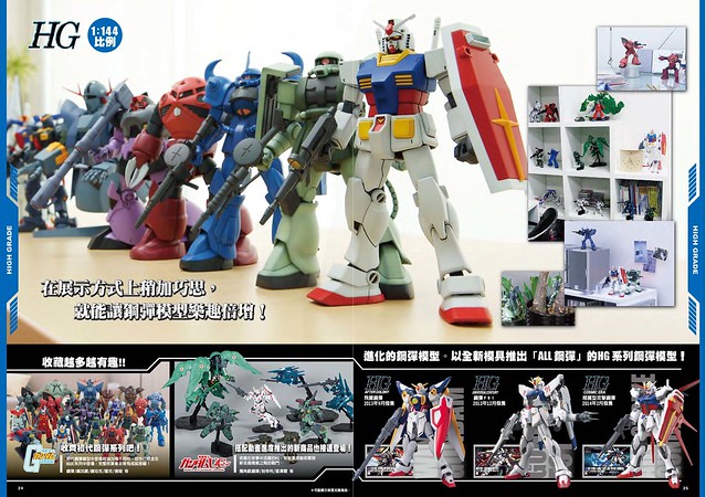 HG 系列從1990 年登場至今,匆匆過了24 個年頭,HG家族不斷發展繁衍,多到數都數不清了(跪求神人提供詳細數字),不只是以宇宙世紀為舞台的HGUC,還包括其它不同時空的HGFC(機動武鬥傳G鋼彈)、HGAW(機動新世紀鋼彈X)、HGAC(新機動戰記鋼彈W)、HGCC(∀鋼彈)、HGBF(鋼彈創鬥者)系列等等...關於HG 的發展史,說來話長,以後再找機會另闢專文詳聊吧。以下先介紹幾款HG經典代表作: