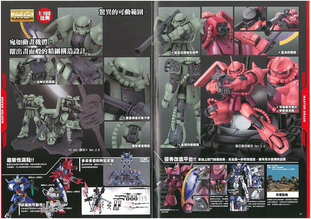 鋼普拉的發展,大概每五年就有一個里程碑,1995年,鋼普拉15週年,HG 再度向上提升一個等級,來到了第二個G,也就是簡稱MG 的大師等級Master Grade,當時喊出的目標便是「究極的鋼普拉」,從技術、材質、設計到包裝,全都是最高規格。和HG 相比,各項表現大幅躍進,除了我們上次提到的機械內構之外,包括可動度、精緻度、造型和細節表現全面進化,並且運用了浮水貼紙、網點等特殊材質,連外盒都改成CG電腦繪圖,完全進入了一個全新的紀元。