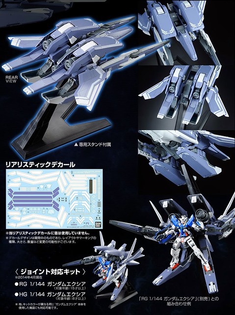 ▼ 2011 年推出的RG 翔翼型攻擊鋼彈,最大的特徵在於可換裝背包機構,能夠對應各種戰況選擇最佳裝備。本體模型附的是翔翼型背包。而巨劍型和重砲型裝備則隨著RG 空中霸者一起推出。
